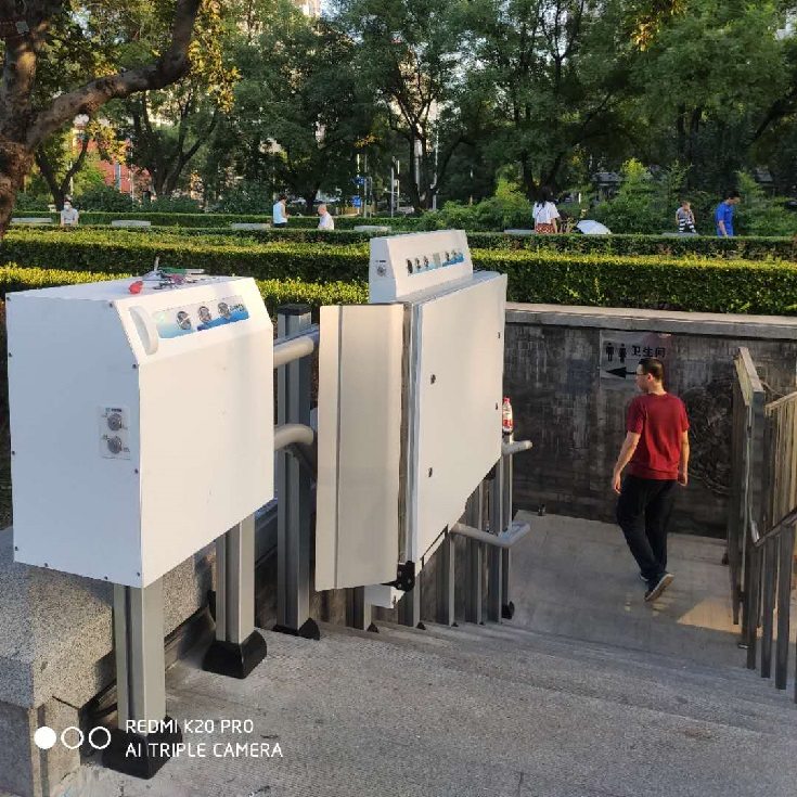 Safety is embedded in every aspect of inclined wheelchair lift design, with multiple layers of protection to prevent accidents. All models include non-slip platform surfaces to keep wheelchairs stable during movement, along with side guards or raised edges to prevent rolling off. Emergency stop buttons are placed on both the platform and nearby wall panels, allowing users or bystanders to halt the lift immediately if needed. Many lifts also feature obstruction sensors: if the platform encounters an object (such as a dropped item or a pedestrian’s foot) during movement, it automatically stops to avoid collision. For power-related safety, battery-powered models include low-battery alerts and backup power to ensure the lift can reach the nearest floor if power fails. Additionally, most lifts are tested to meet industry standards, such as ISO 9386-1 for wheelchair lift safety, ensuring consistent performance across different brands.