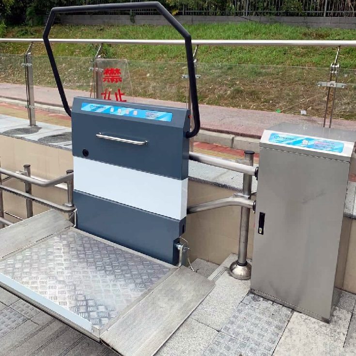 The wheelchair lift-inclined is designed to be applied to the stairs in homes and public places. Its compact and reasonable folding platform can be folded lightly when not in use, saving enough sapce for stairs without affecting the passage of others. It is an ideal solution for the passage of commercial and domestic barrier-free wheelchairs. It adopts a mature and universal rope wheel key drive mode, which is efficient, safe and stable, and cooperates with an intelligent control system to facilitate passengers to independently complete operations and wireless operations in the operating room.